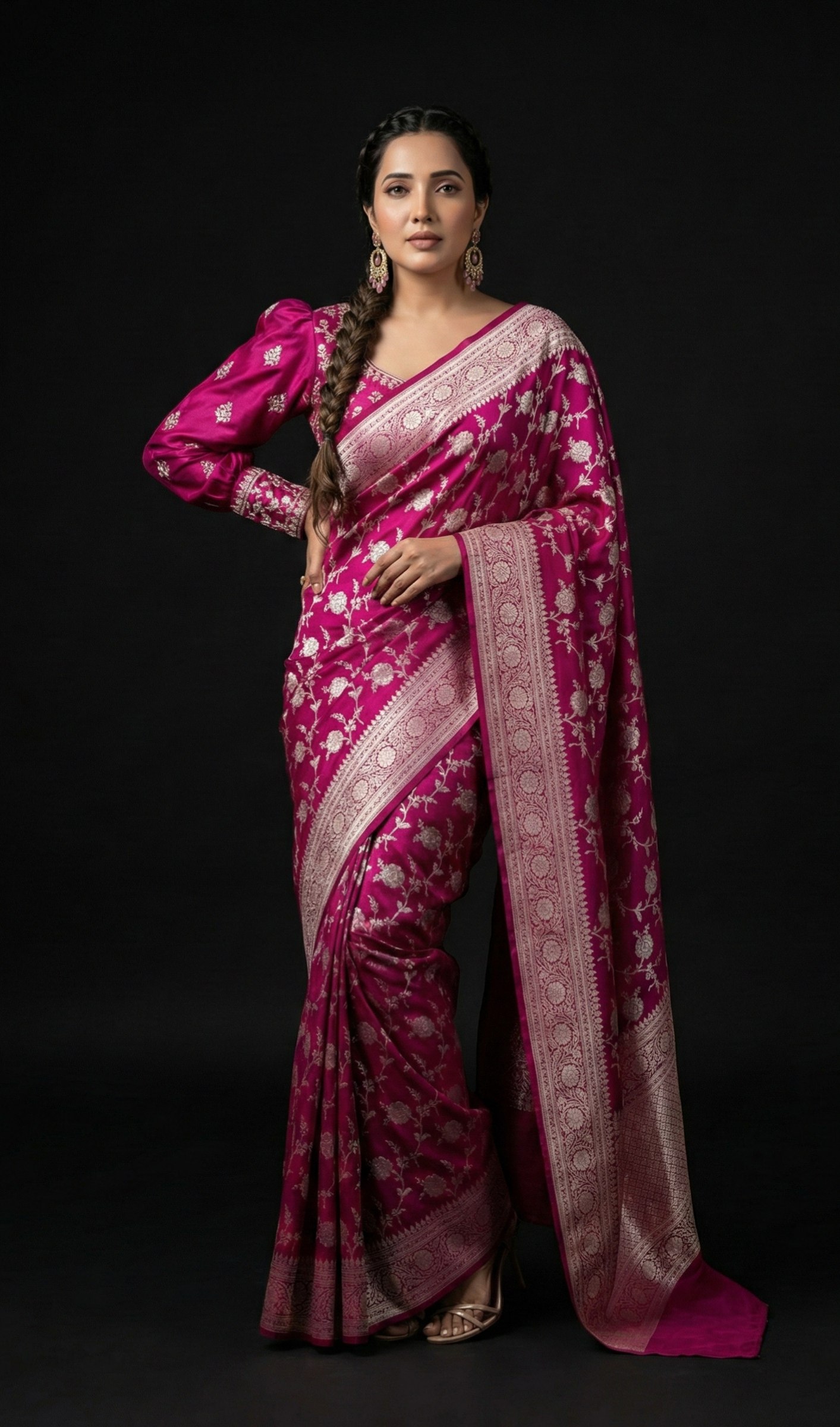 Rani Pink Floral Banarasi Saree