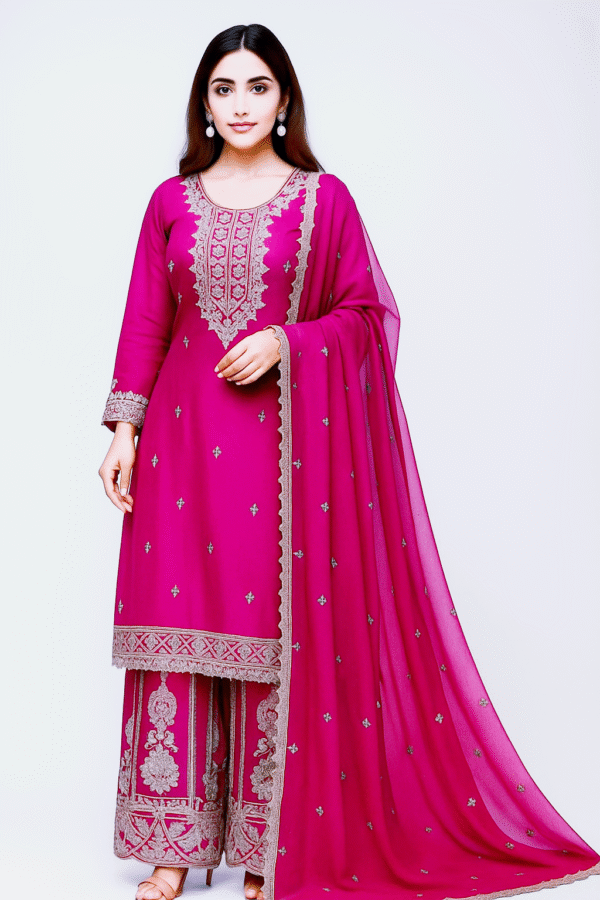 Pink With Golden workFabric: Kurta with detailed chevron and floral embroidery.