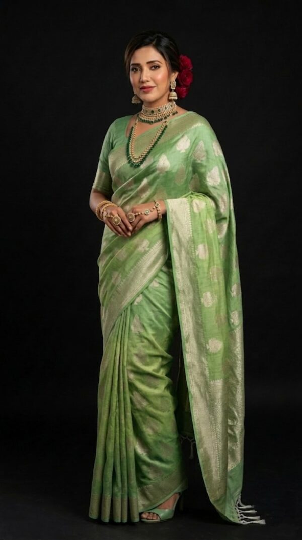 Upgrade your ethnic wardrobe with this premium saree collection, designed with intricate woven motifs and a luxurious finish. The fabric offers a smooth texture with a graceful fall, making it ideal for weddings, festive occasions, and special gatherings. Paired with a matching blouse piece, this saree gives a complete traditional yet stylish look.